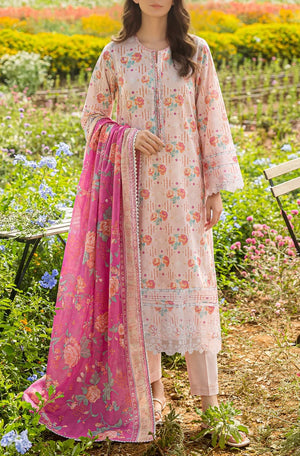 Unstitched Printed Embroidered Lawn 2 Piece (Shirt/Dupatta)