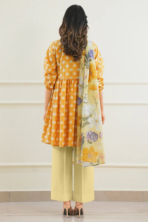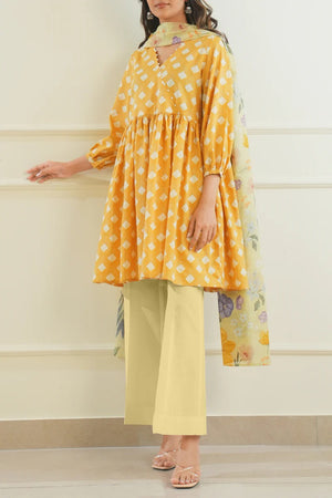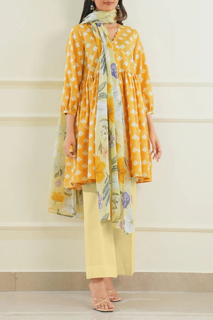 Introducing Unstitched Printed Lawn 3-Piece ensemble in a vibrant mustard yellow hue. This set includes a premium printed lawn shirt a matching lawn dupatta and a dyed cambric trouser . Crafted from high-quality, breathable lawn fabric, this ensemble ensures comfort and style, making it perfect for both casual and semi-formal occasions. The unstitched design allows for personalized tailoring to suit your unique style.